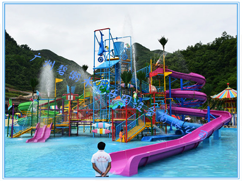 水上樂(lè)園設(shè)備水寨A既實(shí)用又簡(jiǎn)約,此水上樂(lè)園設(shè)備也可進(jìn)行特色包裝,占地面積930平方米,高15米,5道滑梯,1個(gè)中型翻桶。