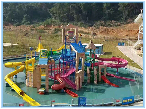 水上樂園設備中型水屋是鋼構和玻璃鋼戲水小品、雕塑進行搭配包裝,給人有眼前一亮的感覺,讓人置身于童話故事里一樣,給人不一樣的美好的感受。